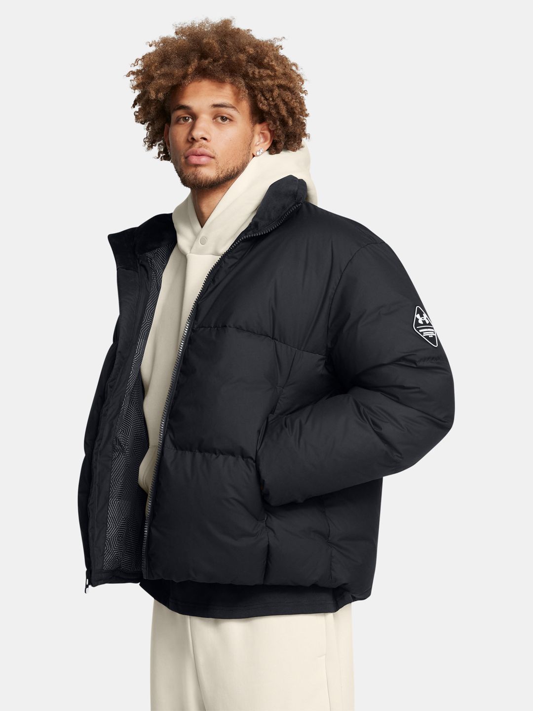 Moška jakna z izolacijo iz račjega puha in vodoodbojno tehnologijo UA Storm vas bo ogrela in ohranila suhe.